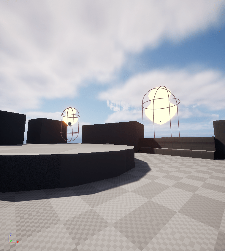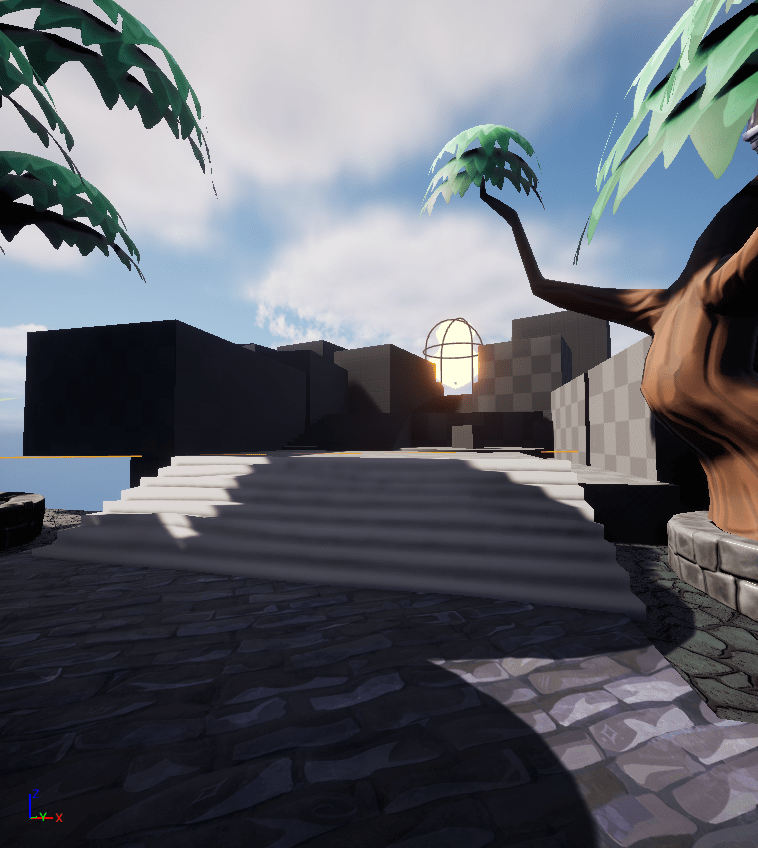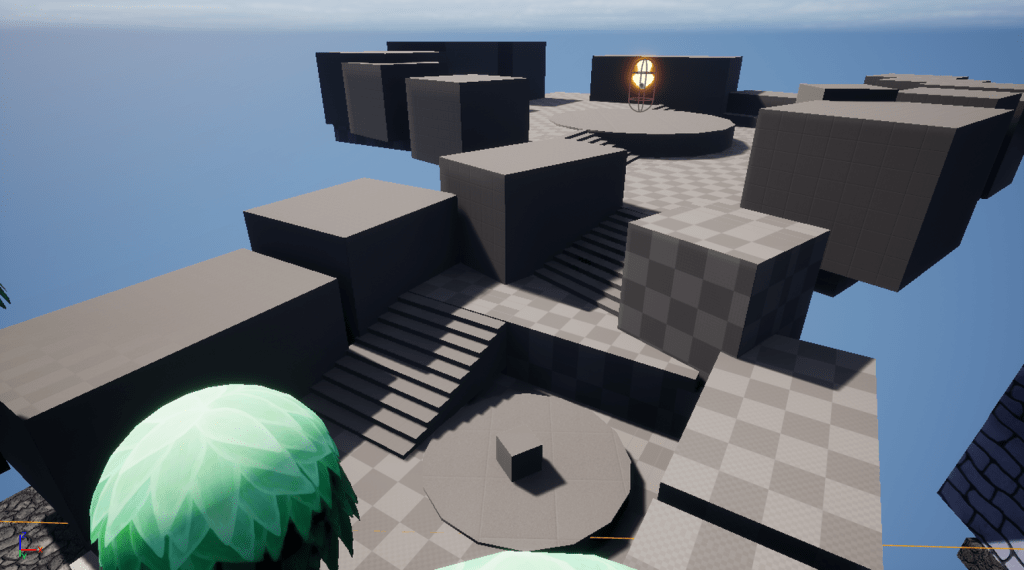 I elected to take charge of the third level. Importantly, I would only have about a week-and-a-half to design, build, and dress the level before moving on. Given the timeline, I narrowed my focus on two principles: (i) creating long sight lines to see the final witch-ball from multiple locations in the level, and (ii) creating narrow paths for traversal to invoke an urban feeling in the space.